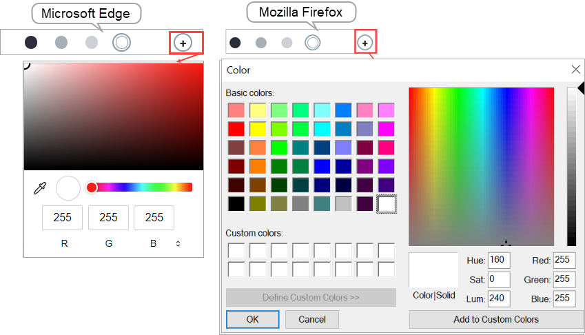 The color configurations is browser-specific. For example, the configuration in Microsoft Edge is different than the one in Mozilla Firefox, as shown in the image below.