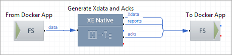 - Inside the container, XES Module for Docker processes the data, generates XData and acknowledgments for good data, and generates reports for bad data.
